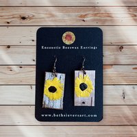 These encaustic earrings will quickly become one of your favorite accessories! Each hand painted encaustic earring is unique, lightweight, and earth friendly. Encaustic is a wax-based paint made of beeswax, resin, and pigment. It is applied while in a molten state onto the bark and fused with a torch.
