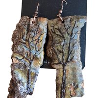 These hand painted statement earrings will quickly become one of your favorite accessories! Each encaustic earring is unique, unbelievably lightweight, and earth friendly. Encaustic is a wax-based paint made of beeswax, resin, and pigment. It is applied while in a molten state onto the bark and fused with a torch.